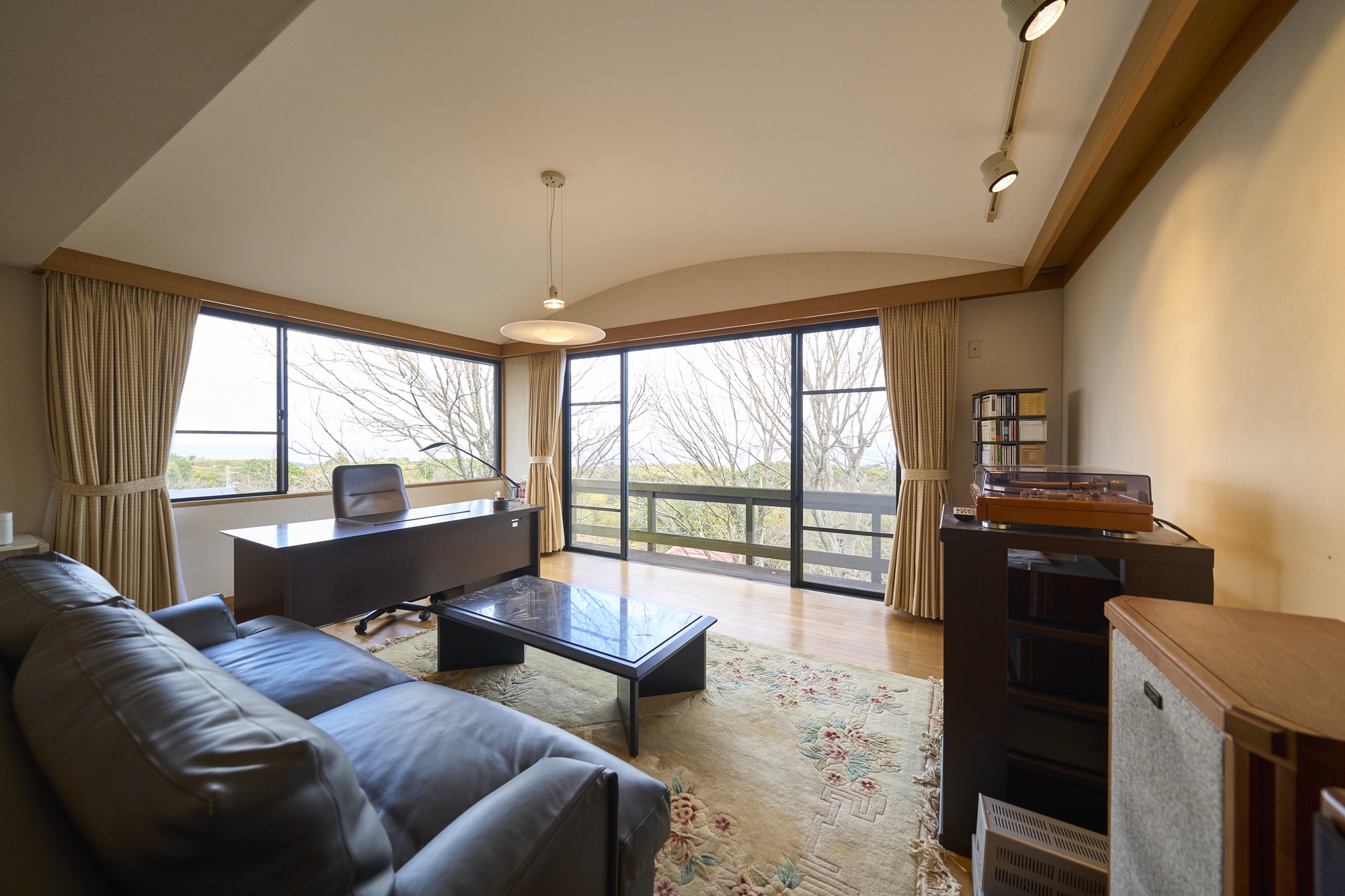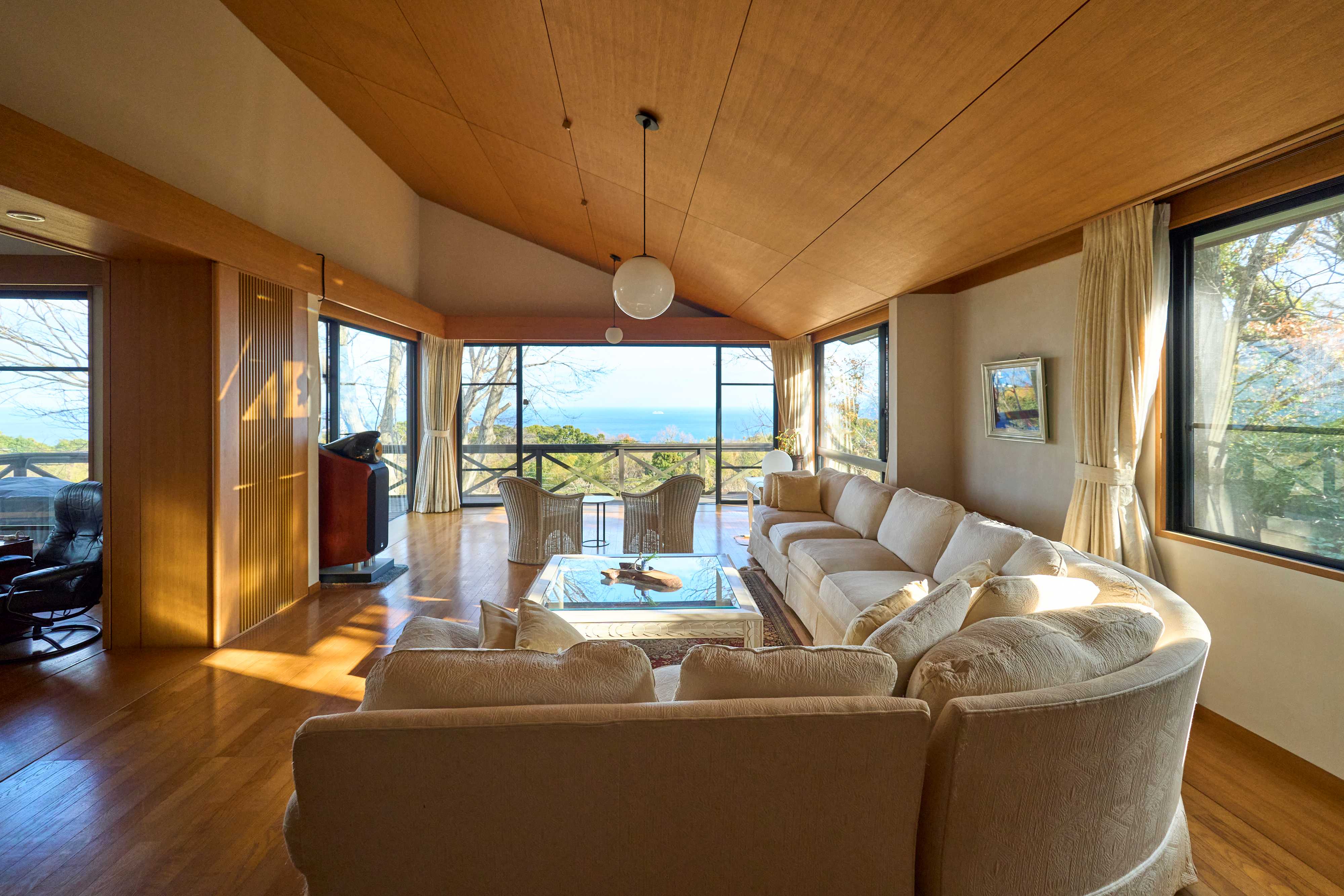 視界に飛び込んでくるのは、リビングの大きな窓の向こうに広がる、海と木々が織りなす景色。