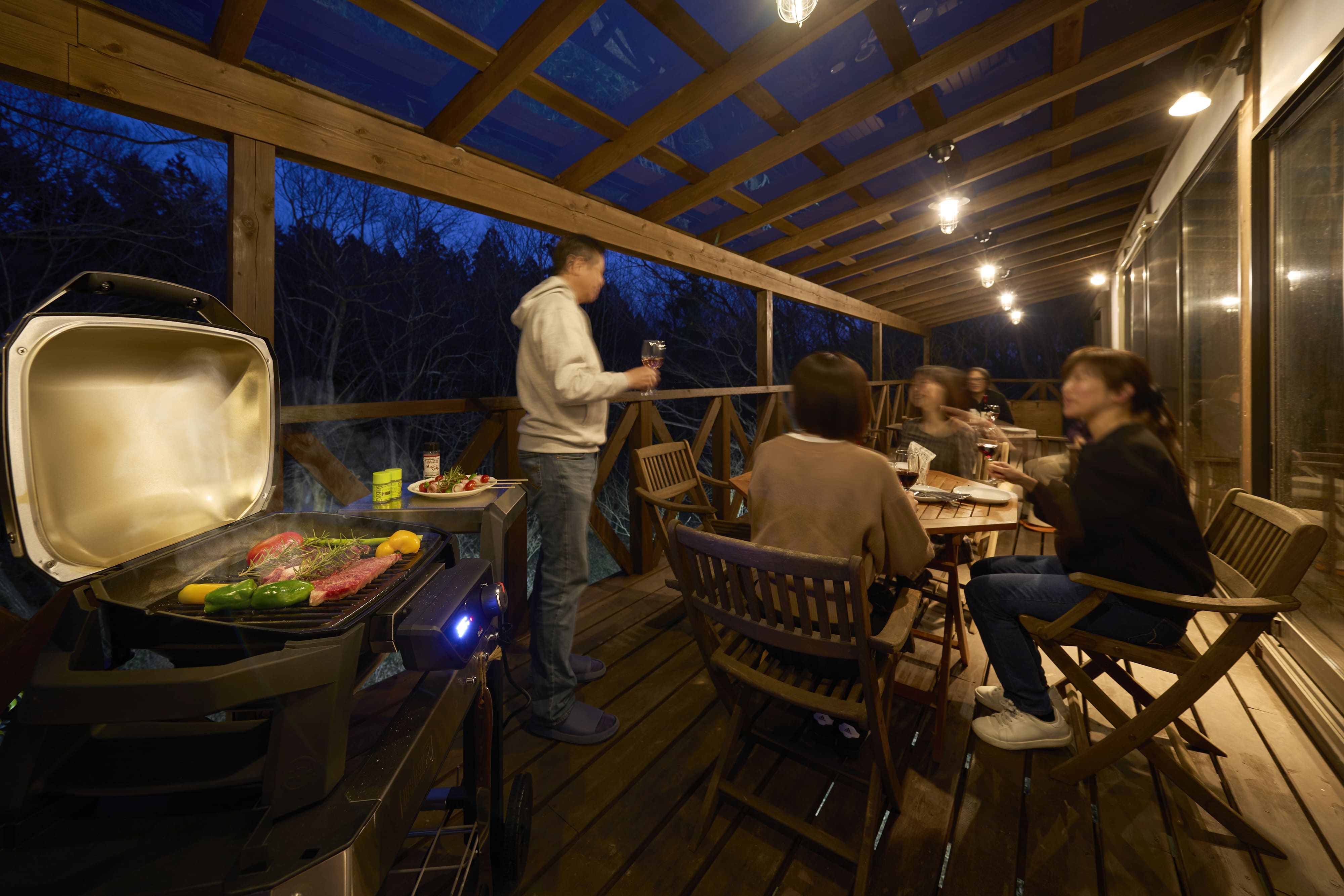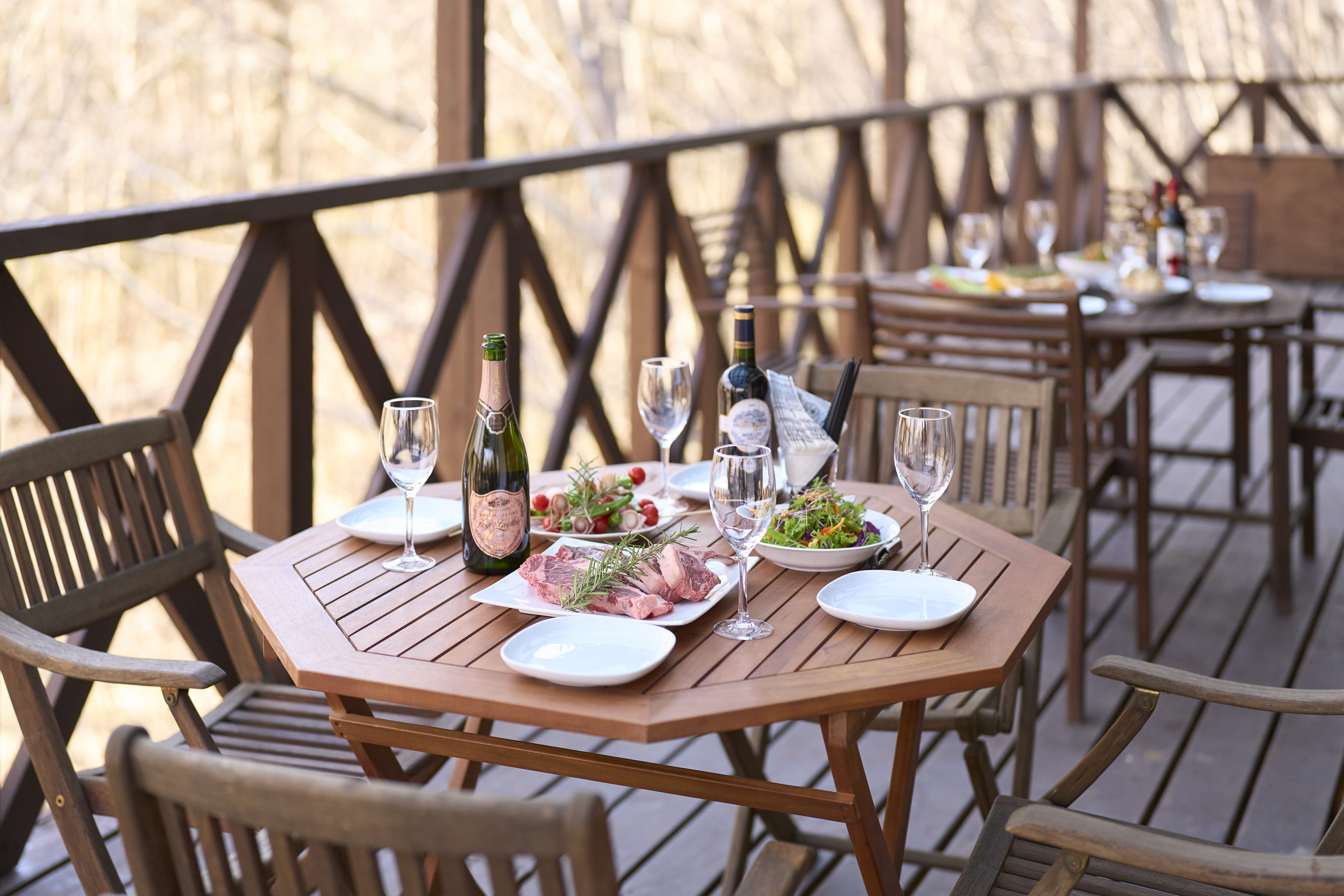 ウッドデッキでのBBQ、川遊び、那須ならではのアクティビティ。