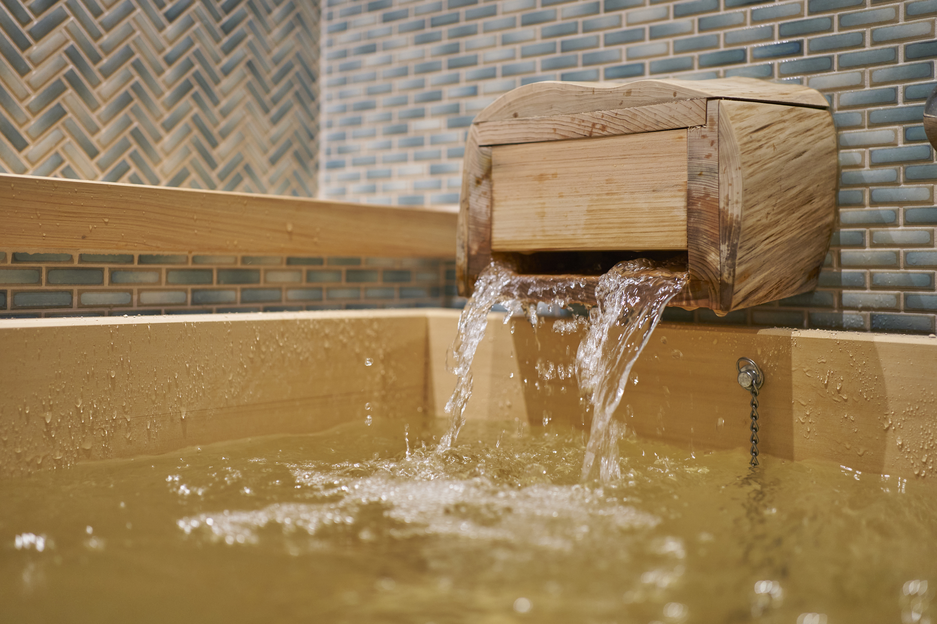 熱海湾を望むリビング、檜の香りに包まれる温泉