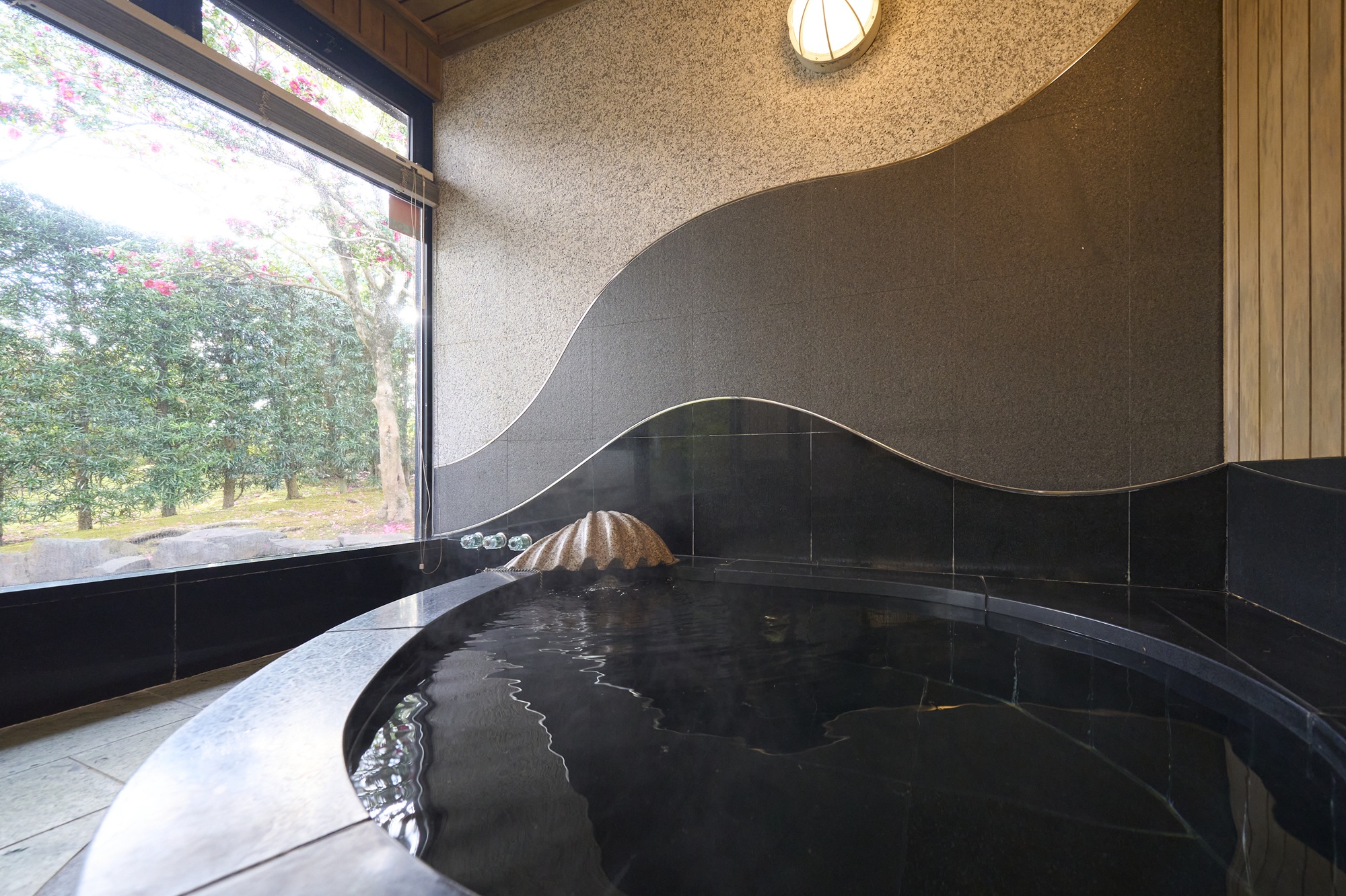 静寂に満ちたプライベート温泉はナトリウム・カルシウムを主成分とする塩化物・硫酸塩泉系で、神経痛・筋肉痛・関節痛・冷え性・疲労回復などへの効果が期待されます。温泉に身を委ね、自然を眺めながら過ごす静かなひととき。
