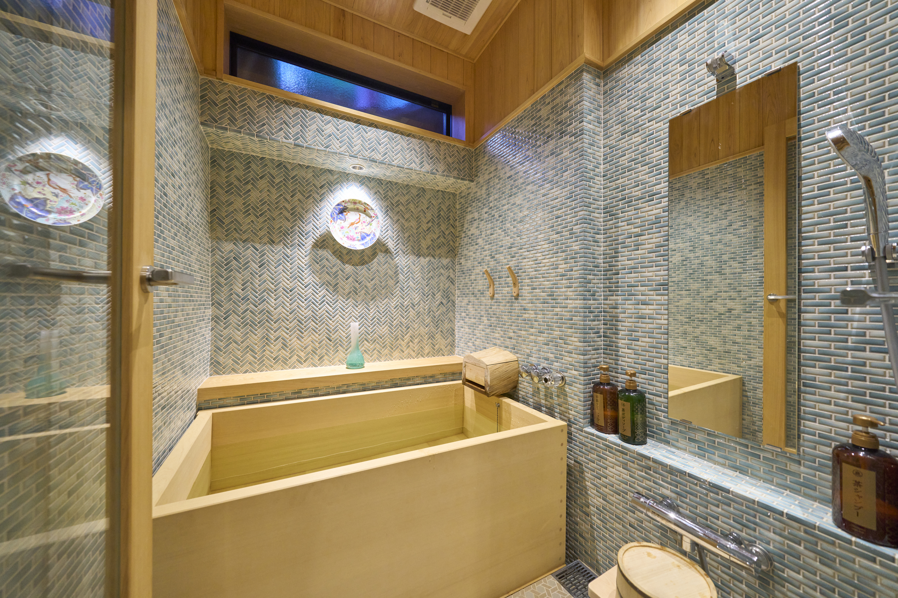 熱海湾を望むリビング、檜の香りに包まれる温泉
