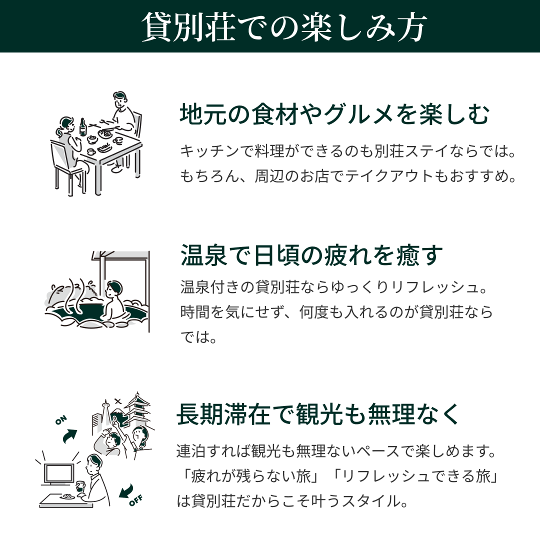 おすすめは、「貸別荘でゆったりと過ごす旅」。